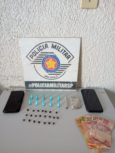 Perguntados se estavam realizando tráfico no local, todos ficaram em silêncio. Ao verificar onde os adolescentes foram vistos pegando algo, os PMs encontraram uma sacola de cor branca, contendo em seu interior 10 pinos de cocaína, um kit com 22 pedras de crack, todas embaladas em plástico de cor preta, prontas para venda.