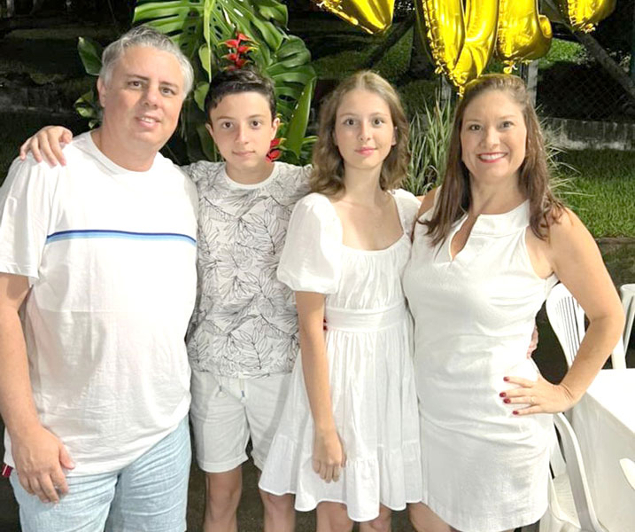 Na quarta-feira, dia 19, Felipe Castello Carril brinda a chegada da nova idade junto a esposa Paula e aos filhos Nicole e Felipinho. Foto: Arquivo Pessoal