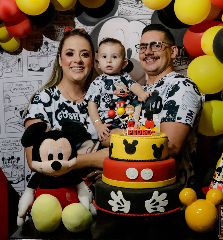 Pedro Henrique Chiavegatto Barion soprou sua primeira velinha no dia 21 de dezembro. A comemoração aconteceu no último sábado, na chácara do Cisne decorada com o tema Mickey, onde foi o centro das atenções dos pais Jhenifer e Júnior, dos avós Fátima, José, Sueli e Ivo e demais familiares. Foto: Arquivo Pessoal