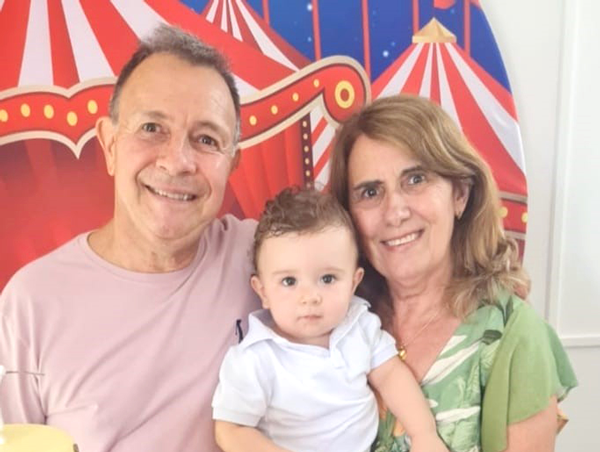 Donizete Fernandes Bernardelli, proprietário da Bercan Corretora de Seguros, comemora a passagem de mais um aniversário nesta segunda-feira, dia 21. A esposa Sônia e o neto Raul, com quem divide a foto, os filhos Nathalia, Laís e Rafael, o genro Otávio e a nora Maria estão a frente dos cumprimentos ao aniversariante. Foto: Arquivo Pessoal