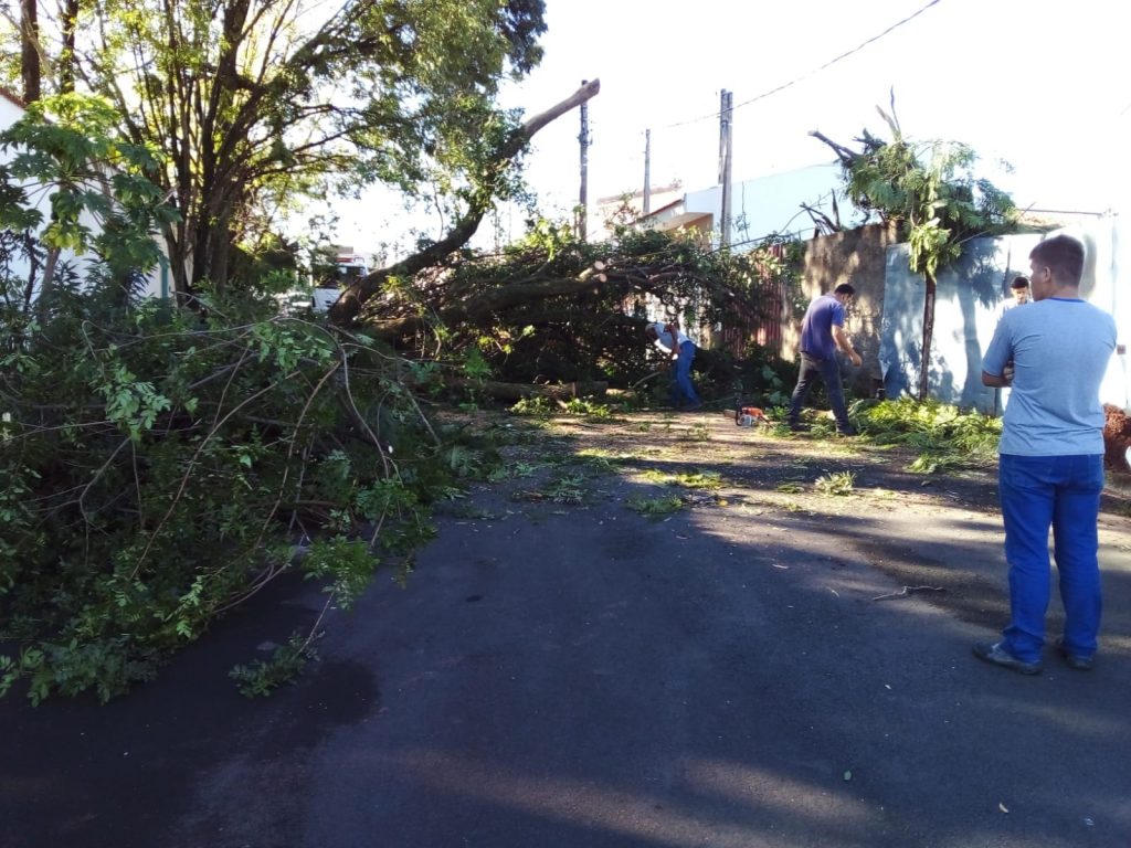 Conforme o explicado, quando ocorre chuva como a de segunda-feira, os departamentos já saem para a rua fazendo esse tipo de serviço, como desobstruir as vias e cortar árvores grandes.