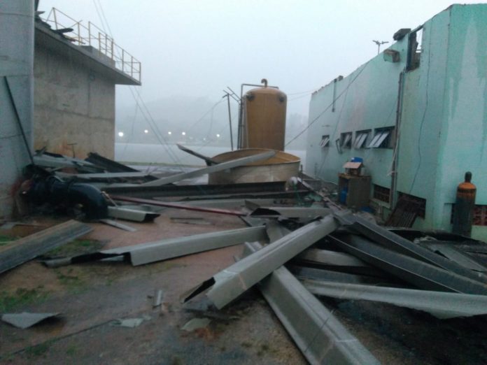 A ventania destelhou a ETA, provocando o rompimento da fiação elétrica, tubulações, arrancando o telhado da casa de química, comprometendo painéis elétricos e causando outros estragos, que paralisaram o funcionamento da estação. Com a ETA inoperante, o prefeito pediu naquele momento que a população economizasse água até que a situação fosse normalizada.