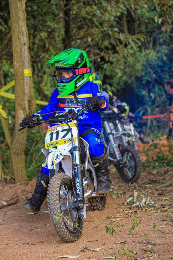 O pequeno, filho de Daniel Rosseto e Marcela Nepomuceno, demonstrou interesse por motos desde o início da infância. “Ele começou a andar de quadriciclo, mas sempre mostrou interesse por moto, pois o pai Daniel faz trilhas. Ele ganhou a moto em 2020 e adaptamos rodinhas para ele conseguir andar. Achávamos que ele não iria conseguir andar e hoje ele domina a moto”, con-tou a mãe.
