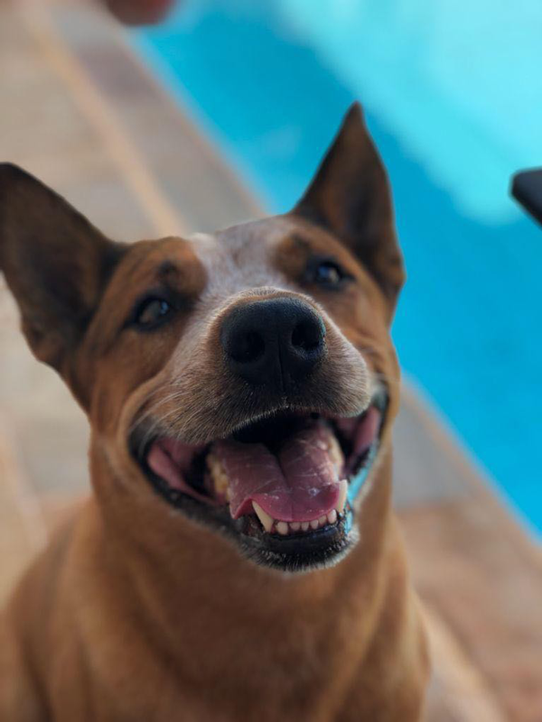 Spike tem quatro anos e é da raça red heeler. Ele está com Rafael desde 2017 e nestes anos só tem dado alegria, companhia e de vez em quando alguns prejuízos. Segundo Rafael, ele já derrubou motocicleta e comeu umas meias.