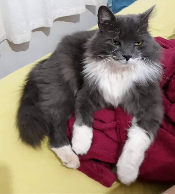 Yuri chegou ainda pequenininho e foi dado de presente para Luiz Antônio por uma amiga de Ovídia. Desde então foi castrado e vem ganhando todos os cuidados, com boa ração, vacinação em dia, além de muito amor e dedicação, que são retribuídos com muitos chamegos.