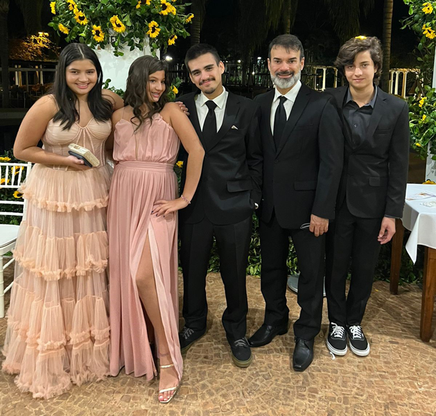 O médico Marco Antônio Goulart celebra a passagem do seu aniversário nesta segunda-feira, dia 13, junto aos filhos Luísa, Laura, Guilherme e Tiago. Foto: Arquivo Pessoal