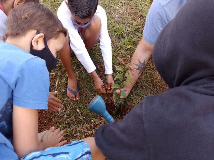 Estudantes aprenderam sobre meio ambiente e plantaram as mudas. Foto: prefeitura de São Sebastião da Grama