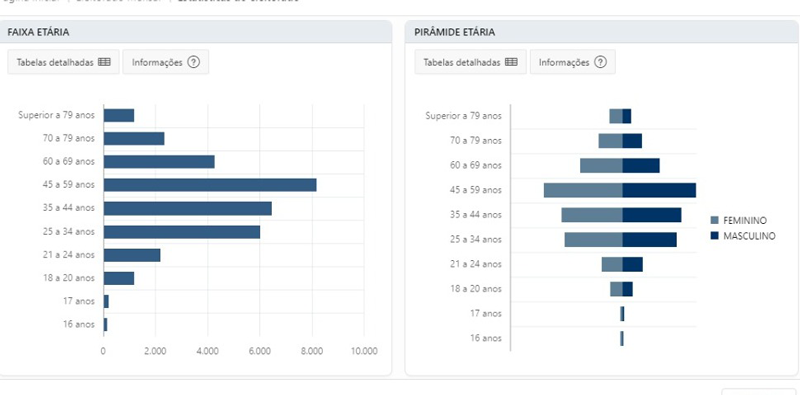 De 21 a 24 anos há 2.199, sendo 1.096 mulheres e 1.103 homens. Entre 25 e 34 anos, há 6.013 eleitores, sendo 3.082 mulheres e 2.931 homens. De 35 a 44 anos, há 6.438, sendo 3.277 mulheres e 3.161 homens.
