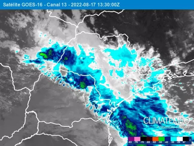 Na quinta-feira, dia 18, a frente fria avança pelos estados do Paraná, São Paulo e Mato Grosso do Sul e chegará ao centro de Mato Grosso e ao sul dos estados de Rondônia, Goiás e Minas Gerais, ocasionando chuvas intensas e rajadas de vento.