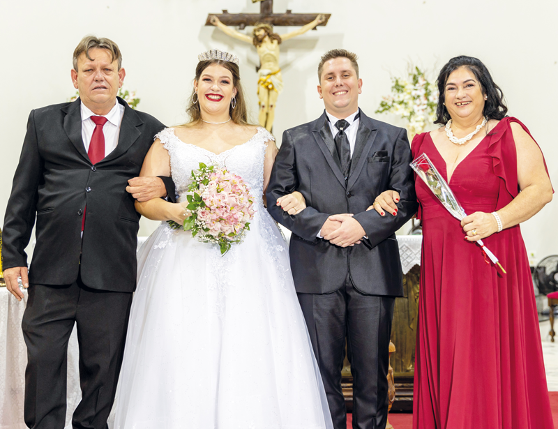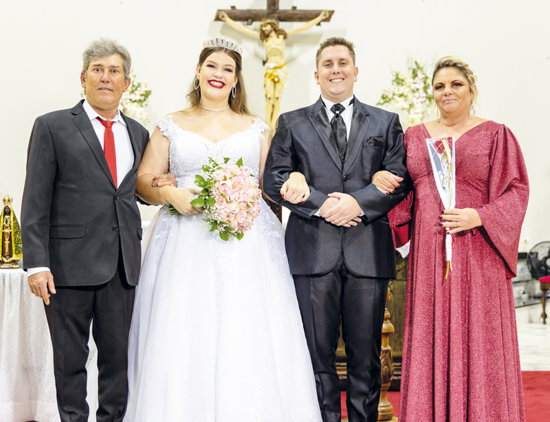Em uma emocionante celebração realizada no dia 3 de setembro, Marcela Gonçalves Expósito Cossi e Vinicius Cossi se casaram em cerimônia conduzida pelo padre Carlos Eduardo Dobies, na Igreja Matriz de Sant’Ana. Após a cerimônia que uniu os noivos, Marcela, que é recepcionista e Vinicius, contador, reuniram padrinhos e familiares para uma animada confraternização na chácara Paluan, onde foi servido um delicioso jantar preparado por Sandro C. Cossi e Henrique Cossi. Muito felizes com a união estavam Mara Sueli Gonçalves Expósito e José Fernando Expósito, pais de Marcela e Solange Maria Cossi e Demetrius Cossi, pais de Vinicius. Fotos: Feliza Fotografia