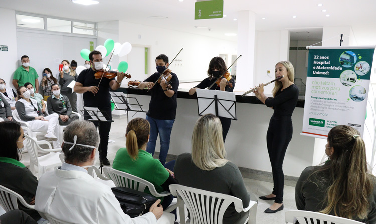 Em 1º de outubro o Hospital e Maternidade Unimed (HMU), principal serviço da Unimed Leste Paulista (ULP), completou 22 anos. Para celebrar a data e homenagear cooperados, colaboradores e beneficiários, a Orquestra Sinfônica Sanjoanense (OSS) realizou dois concertos adaptados. Na quinta-feira, dia 29, a apresentação aconteceu na nova ala do HMU e na sexta-feira, dia 30, no Auditório da Cooperativa Médica.