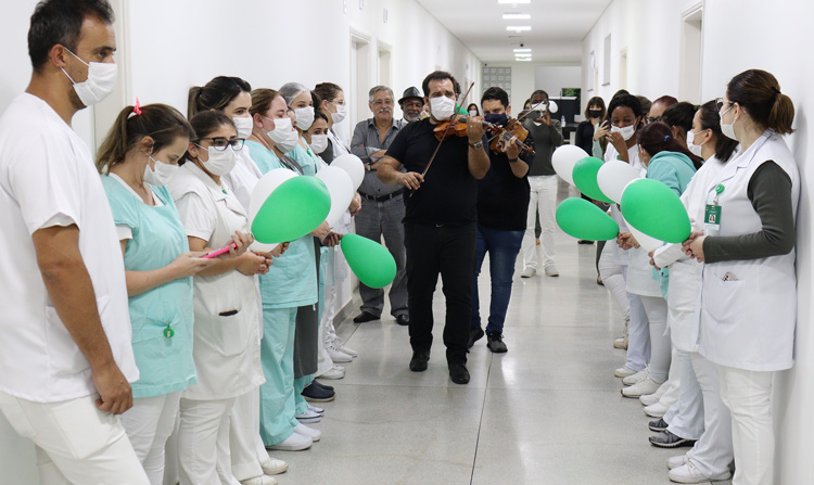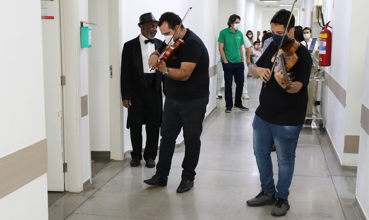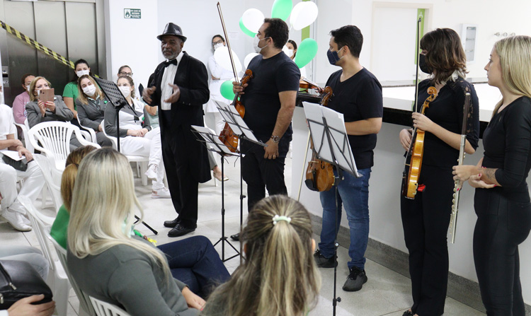 Apesar de ter sido a primeira mostra da Orquestra nas dependências da instituição, a música já faz parte da rotina, isso porque o colaborador da Manutenção, Donizetti Domingues, tem o hábito de apresentar-se para os pacientes. Ele aproveitou a ocasião e cantou duas canções com os músicos. “Eu tenho orgulho de poder expressar minha arte neste momento tão importante, é uma grande honra”, destaca.