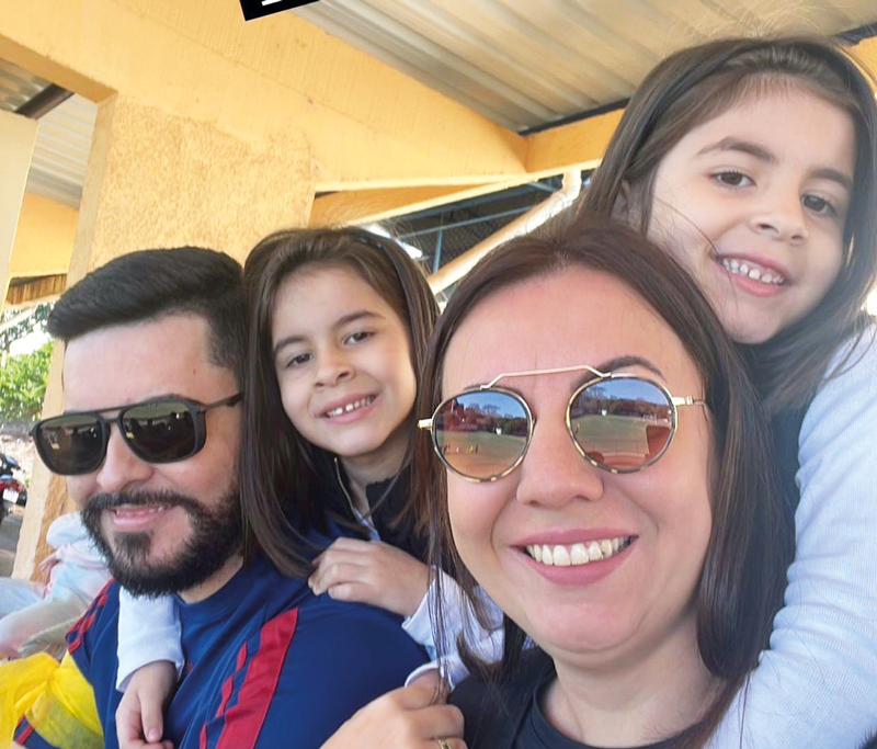 A analista de RH, Priscila Prates, troca de idade neste sábado, dia 15, recebendo as felicitações do marido Ricardo e dos filhos Daniel e Miguel. Foto: Arquivo Pessoal