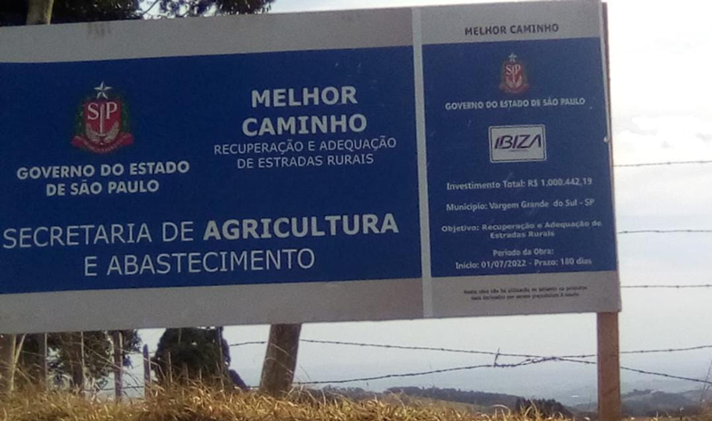 A manutenção está sendo feita através do Programa Melhor Caminho da Secretária de Agricultura e Abastecimento do Estado de São Paulo através de convênio firmado com a Prefeitura de Vargem Grande do Sul.