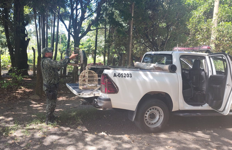 Após denúncia, a Polícia Militar Ambiental resgatou 35 aves que estavam em cativeiro em casa no Jardim Bela Vista, em Vargem Grande do Sul, no sábado, dia 10.