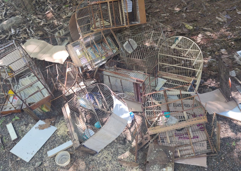 As aves foram reintroduzidas na natureza e as gaiolas foram destruídas e depositadas em local apropriado.
