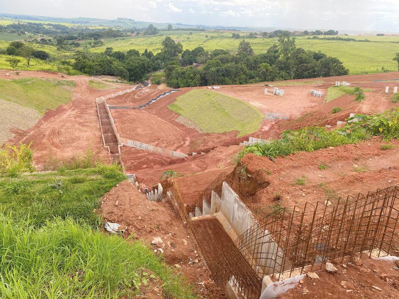 De acordo com o projeto para a obra, seria feito o retaludamento da área erodida, execução de aterro na área central da voçoroca, sobre o qual seria implantado um canal de concreto para o escoamento das águas de chuva, com uma escada dissipadora em gabião.