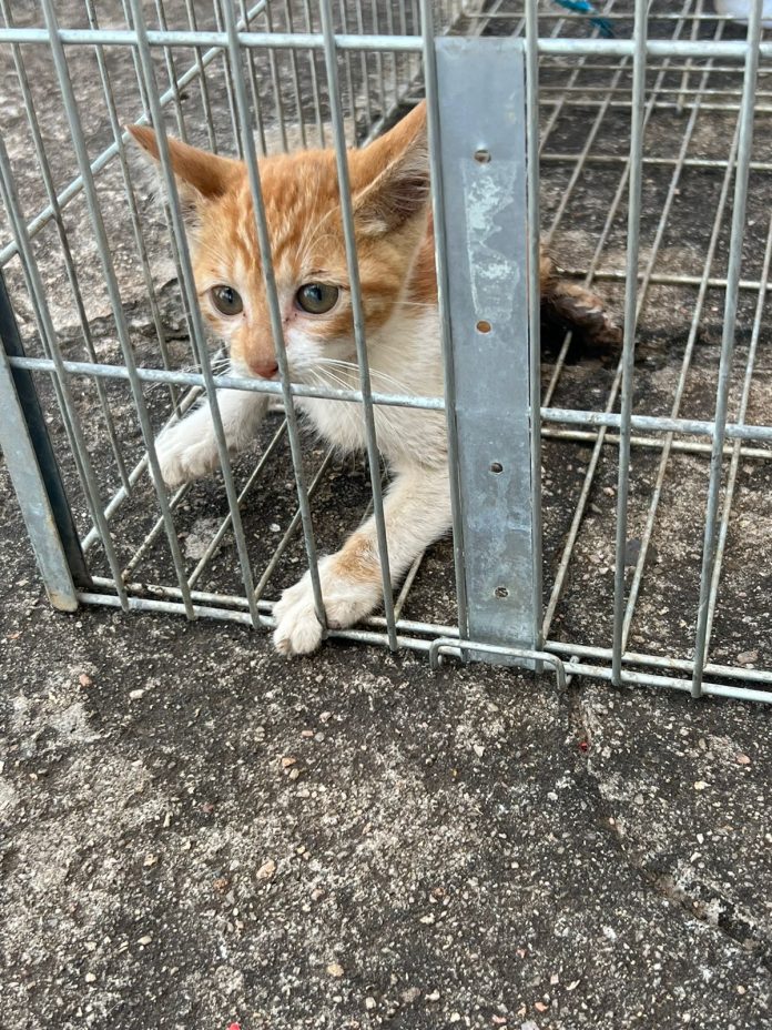 Bem arisco e medroso, o gatinho estava se escondendo há dias dentro do cano de uma casa na Rua Dr. Moacir Troncoso Peres. Moradores haviam tentado resgatá-lo, sem sucesso.