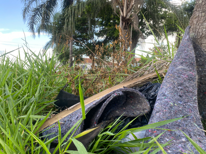 No local, a reportagem do jornal constatou que embora a grama tivesse sido aparada, o mato no entorno das árvores estava alto e havia muito lixo espalhado pela praça, inclusive com mau cheiro e moscas num dos sacos de lixo, que aparentava conter um animal morto.