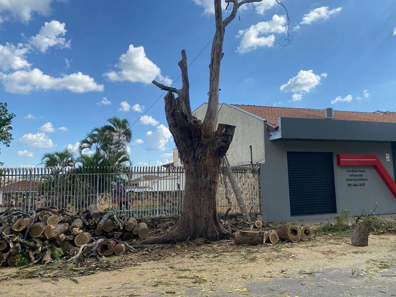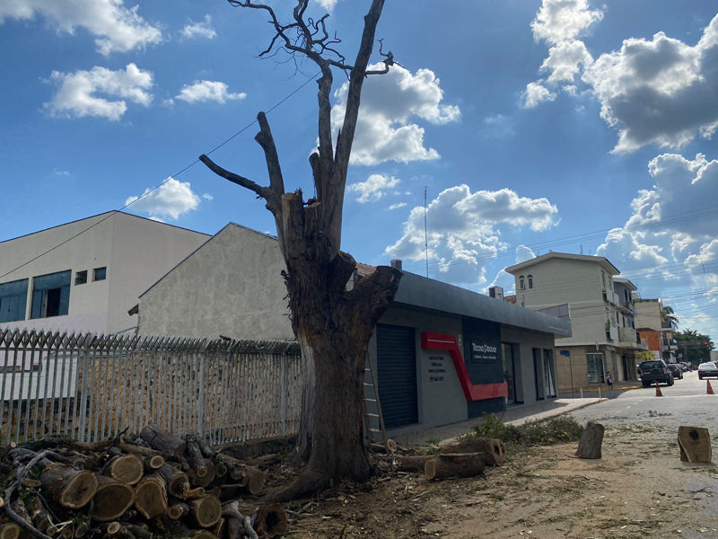 Provavelmente uma das mais antigas árvores plantadas pelo poder público municipal nas calçadas de Vargem Grande do Sul, a antiga Sibipiruna localizada na Avenida Regato, perto do cruzamento com a Rua Coronel Lúcio, em frente ao Supermercado União, foi cortada na tarde da última terça-feira, dia 4, chamando a atenção de quem passava pelo local.