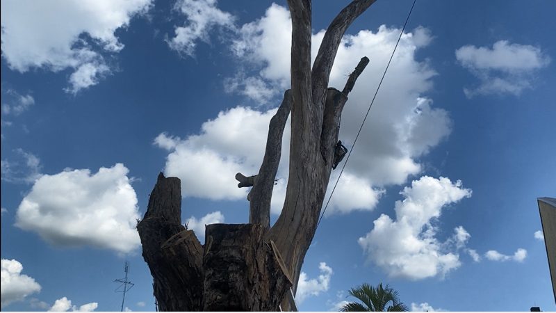 Mas árvores são seres vivos, crescem, atingem seu apogeu e como todos os seres vivos, começam a perecer. Essa sibipiruna, de mais de cinco décadas, estava com muitas partes secas, comprometendo a sua saúde. Gigante, se tombasse, poderia causar danos em imóveis ou machucar pessoas. Foi necessário seu corte, o que foi autorizado pelo poder público.