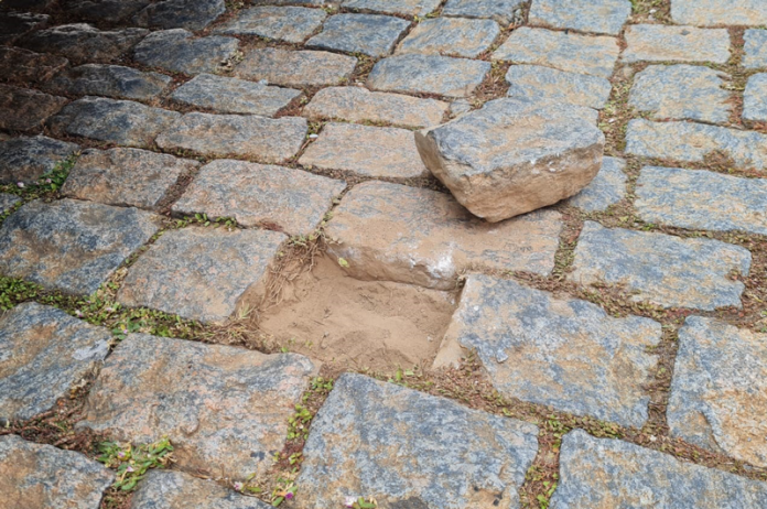 Um paralelepípedo solto na Rua Dr. Moacir Troncoso Peres causou um acidente nesta quarta-feira, dia 24, por volta das 12h30.