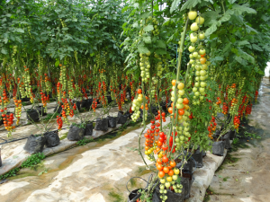 Hoje a empresa está com três unidades de estufas, todos com tomates de rama e uma porcentagem menor do sweet grape. Também está plantando sementes de batata em estufa para os produtores que vão plantar em campo aberto e está obtendo um bom resultado.