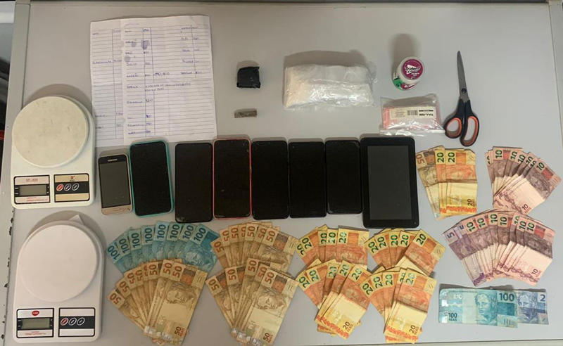 Na operação, foram apreendidas 338,82 gramas de cocaína dispostas em diversas porções e pedras grandes, uma porção grande de haxixe pesando 41,62 gramas, uma porção de maconha pesando 1,96 gramas e três pedras de crack pesando 1,4 gramas. Ainda foram apreendidos R$ 2.592,00, quatro balanças de precisão, cartão do banco C6, canivete com resquícios, três folhas com anotações, uma tesoura com resquícios, dois pacotes com embalagens, oito celulares, um tablet e um frasco vazio com resquícios.