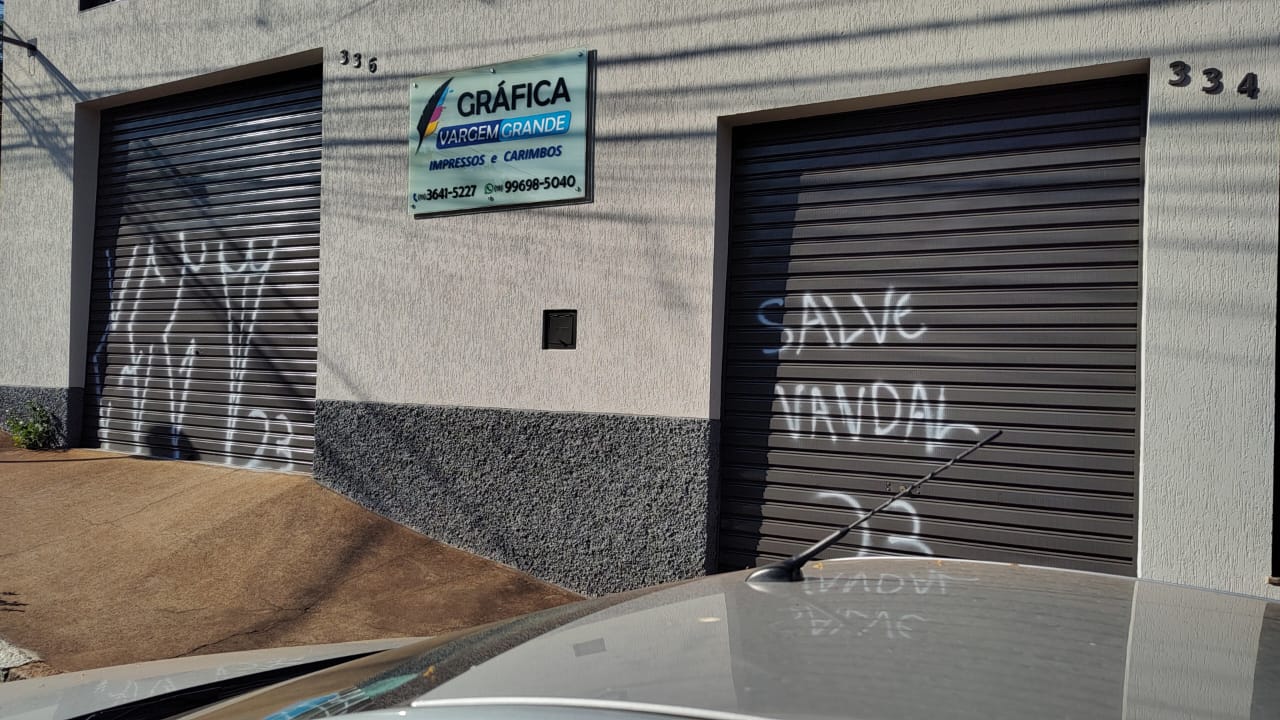 Na madrugada da última terça-feira, dia 14, por volta das 3h55, um estabelecimento comercial foi vandalizado na Rua XV de Novembro. As portas da Gráfica Vargem Grande foram pichadas.