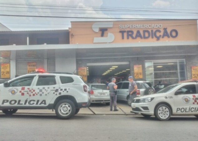 Entre os produtos, estavam chocolates e azeite. Após passar pelo caixa sem pagar, ele foi detido pelo proprietário e por um funcionário, aguardando a chegada das viaturas.