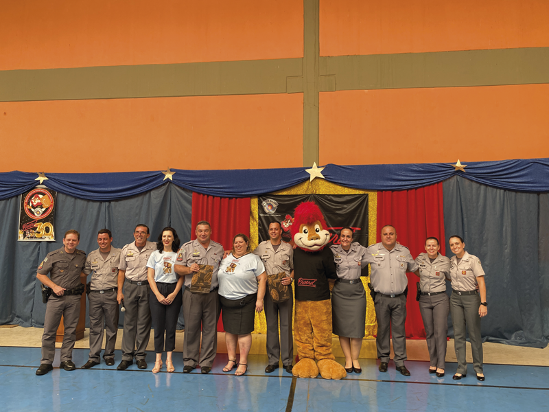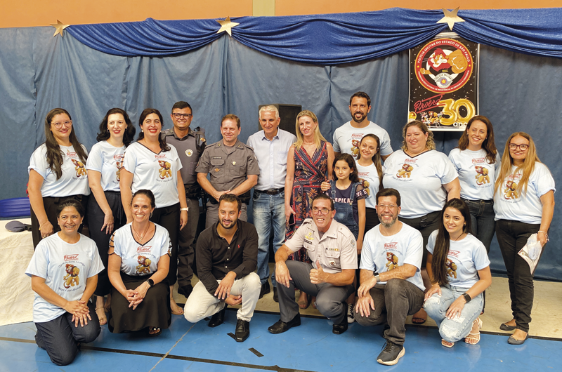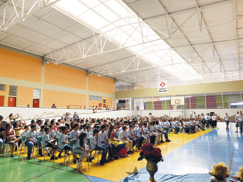 A solenidade de formatura de 100 alunos do 5º ano das EMEBs Nair Bolonha e Mário Beni, que participaram do Programa Educacional de Resistência às Drogas e à Violência (Proerd) junto com Cb PM Valter e Cb PM Furtado, em Vargem Grande do Sul, aconteceu nesta sexta-feira, dia 1º, na Escola Nair Bolonha.