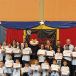 Após a entrega das medalhas, os alunos das duas escolas se apresentaram. Em seguida, todos receberam os certificados, fizeram o juramento e cantaram a conhecida canção do Proerd.
