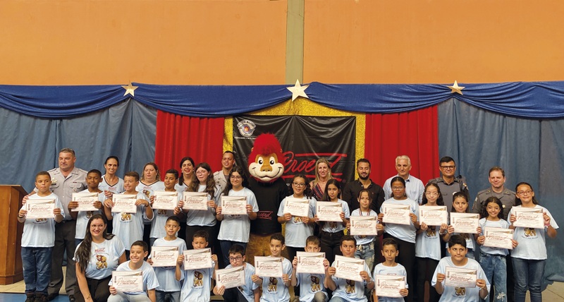 Na ocasião, o mestre de cerimônia explicou que o Proerd é um programa de educação preventiva ao uso de drogas, que tem por objetivo evitar que crianças e adolescentes iniciem o seu uso. O programa ensina técnicas centradas na resistência à pressão dos companheiros auxiliando para as crianças dizerem não as drogas.