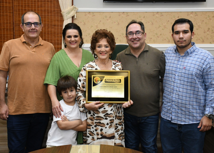 Com apenas seis anos, o outro neto de Márcia, Davi Buozi Iared, também ocupou a tribuna e agradeceu a presença de todos na ‘linda homenagem’ que foi feita a sua avó. Márcia recebeu o Diploma de Mérito Dr. Francisco Álvares Florence das mãos da vereadora Danutta e foi ovacionada por todos os presentes.