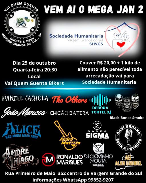 Mega Jan 2 é na quarta no Vai Quem Guenta Bikers & Beer