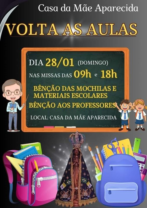 Toda a comunidade é convidada a comparecer nas missas de benção dos materiais escolares para a volta às aulas.