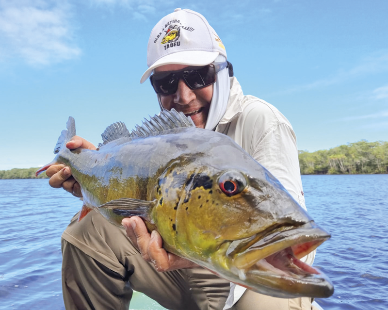 Os primeiros açus já começaram a pipocar na hélice High Roller que tanto o Bigode como eu, passamos a lançar nos lagos. Era uma maratona de jogar a isca artificial entre as galhadas, junto à barranca e também no meio, onde o guia experiente avistava as filhoteiras e a pancada era certeira quando encontrava o açuzão.