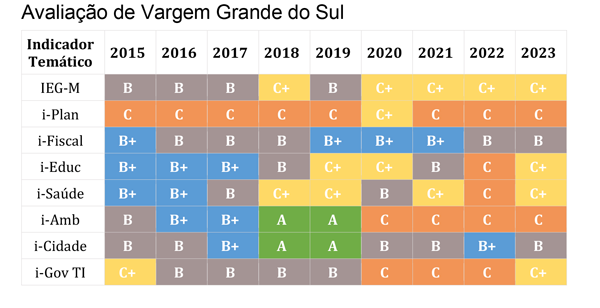 Das sete áreas, Vargem Grande do Sul obteve duas notas C, que é a pior nota, uma em Planejamento e a outra em Meio Ambiente. Já nos quesitos Educação, Saúde e Governança em Tecnologia da Informação, tirou nota C+, que é a em fase de adequação ao nível de efetiva. Nas matérias relativas a gestão fiscal e segurança das cidades, que envolve a Defesa Civil, alcançou a nota B, considerada efetiva.