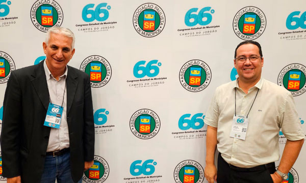 O vereador Carlos Eduardo Scacabarozi, o Canarinho (PSDB), e o prefeito Amarildo Duzi Moraes (Sem partido) estiveram presentes no 66º Congresso Anual dos Municípios, em Campos do Jordão, na última semana. O congresso foi realizado pela Associação Paulista de Municípios, sendo três dias intensos com muitos painéis e palestras pertinentes, abrangendo inúmeros assuntos de interesse das cidades. Na ocasião, Canarinho e o prefeito participaram de reuniões com assessores de deputados e empresas prestadoras de serviços importantes para Vargem Grande do Sul. Canarinho comentou sobre o evento. “Muito feliz em poder estar neste evento mais uma vez. O trabalho não pode parar”, disse.