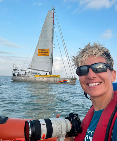 Neste momento, a documentarista está participando de uma importante missão junto com cientistas brasileiros na costa amazônica, no veleiro Witness, do Greenpeace, que segundo a ONG, “tem o objetivo de fomentar a produção de conhecimento científico em relação à dinâmica das águas costeiras e oceânicas da bacia da Foz do Amazonas, documentar a rica sociobiodiversidade da região e possíveis impactos da exploração de petróleo”.