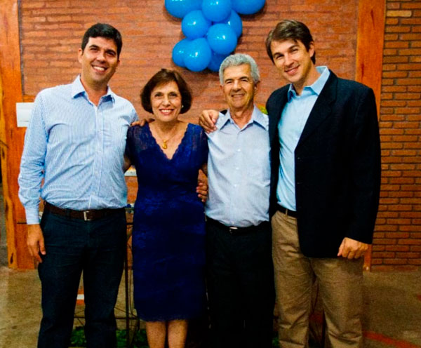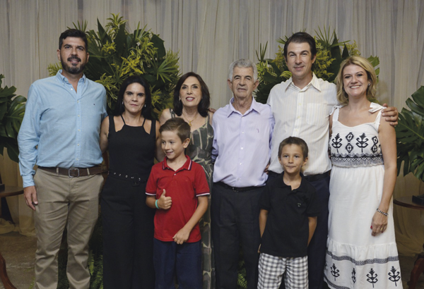 José Ângelo Trogiani completou 80 anos de idade no dia 12 de março e celebrou a data no último sábado, dia 16, junto a esposa Regina, aos filhos Luciano e Reinaldo, aos netos Rafael e João Pedro e as noras Maria Fernanda e Erika. Fotos: Falcão Foto & Arte