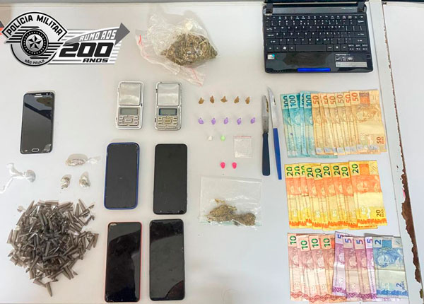 No quarto da mulher foi encontrada uma porção grande de maconha embalada em plástico, outra porção de maconha de tamanho menor embalada para a venda e um aparelho celular. Um celular e R$ 22,00 foram encontrados em poder do rapaz, já em seu quarto, os policiais localizaram três aparelhos celulares, um netbook, duas facas com resquícios de drogas, sete pinos de cocaína prontos para a venda, uma porção grande de maconha e a quantia de R$ 980,00.