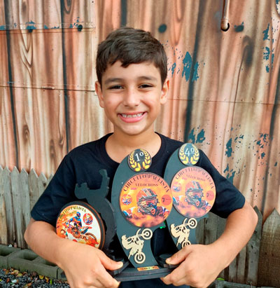 O piloto Pedro Rosseto, de 8 anos, participou da terceira etapa do Circuito Paulista de Velocross, em Nova Odessa, no último final de semana. Ele competiu nas categorias 50 cilindradas e 65 cilindradas.