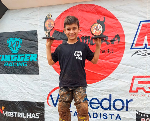 Na categoria de 50cc, ele largou muito bem e levou o troféu de HOLESHOT, entregue ao piloto que chega na frente na primeira curva. Mesmo com a pista muito escorregadia e cheia de lama, Pedro ficou em primeiro lugar toda a corrida e levou o troféu da etapa. Com o resultado, o piloto segue na liderança do campeonato.