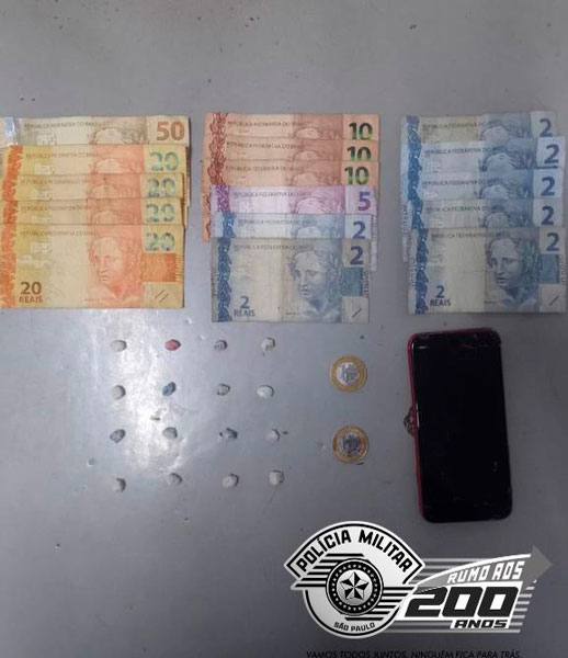 Ele foi abordado, sendo um rapaz já conhecido nos meios policiais pelo tráfico de drogas. Com ele, foram encontrados R$ 180,00 e 14 pedras de crack. Os policiais verificaram que o que ele jogou no chão eram duas pedras de crack.