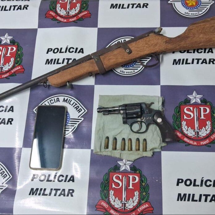 As equipes foram ao local a pé e abordaram o homem. Foi questionado se ele possuía alguma arma de fogo, mas ele estava com um revólver na cintura. Foi localizado um revólver calibre 32, marca Taurus, capacidade para 6 munições, carregado com 6 munições intactas, oxidado, de numeração 585613. O revólver estava em um pedaço de pano.