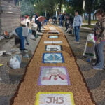 Na Paróquia Sant’Ana, houve missa às 16h e os enfeites foram feitos por cerca de 60 voluntários da paróquia na rua em torno da Matriz, a partir das 8h30.
