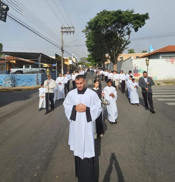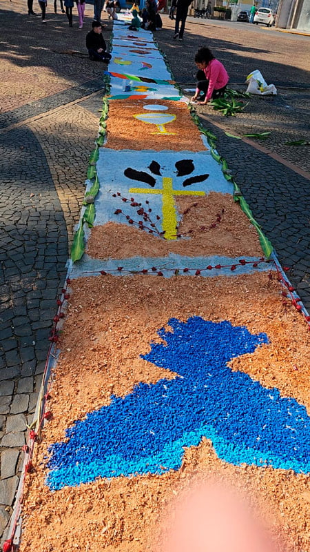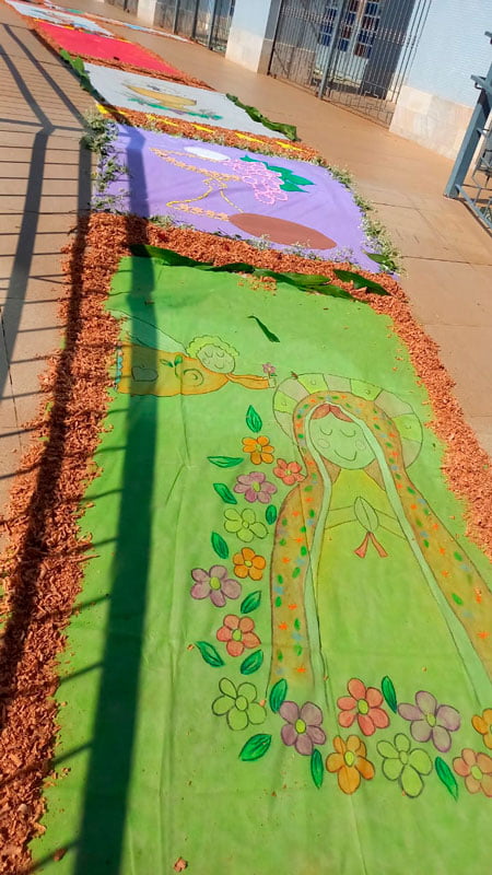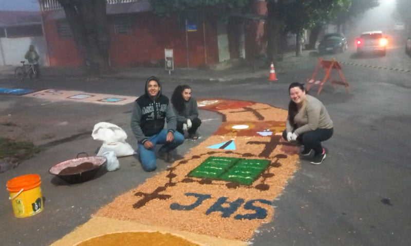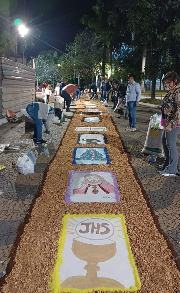 Na Paróquia Santa Luzia e São João Paulo II, a confecção dos enfeites nas ruas teve início às 4h pela comunidade da paróquia. Às 9h foi realizada a missa, seguida da procissão.