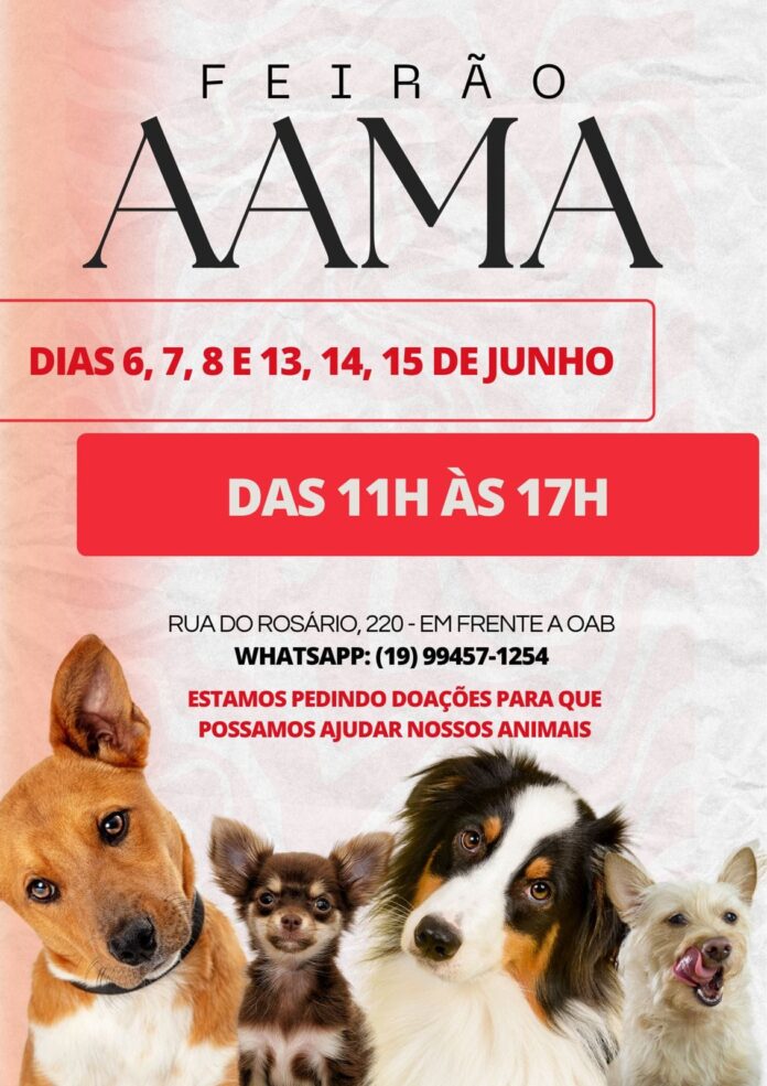A Associação Amigos dos Animais (AAMA) de Vargem Grande do Sul está realizando um Feirão neste mês. O evento teve início na quinta-feira, dia 6, e segue até este sábado, dia 8.