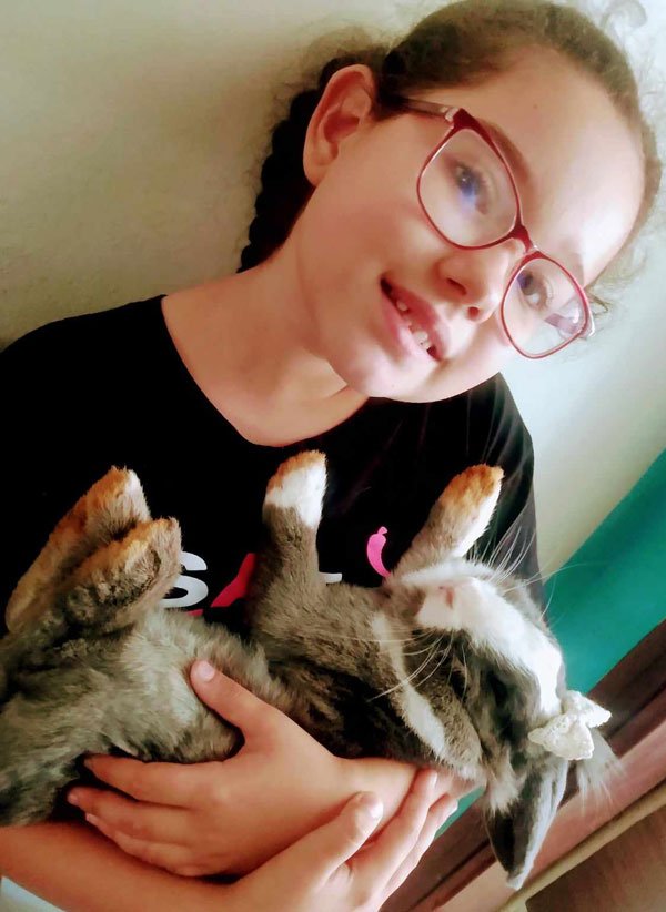 Em 2022, o primo de Lívia, André, deu de presente para ela a coelhinha Summer e no mês passado, deu a coelhinha Emily.